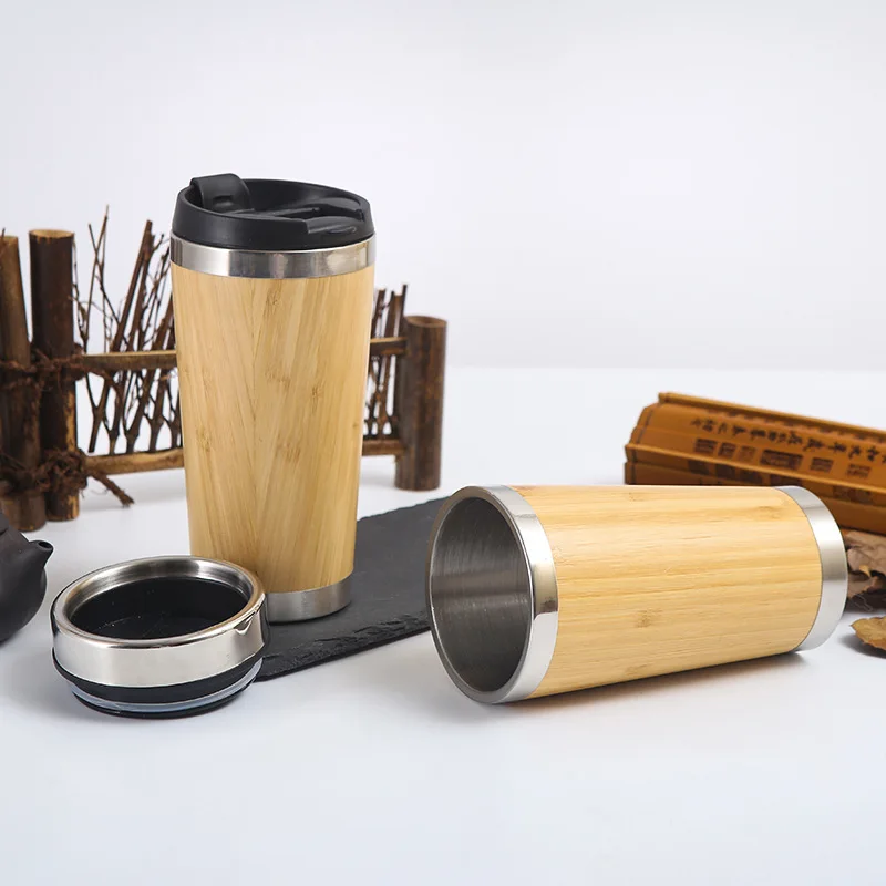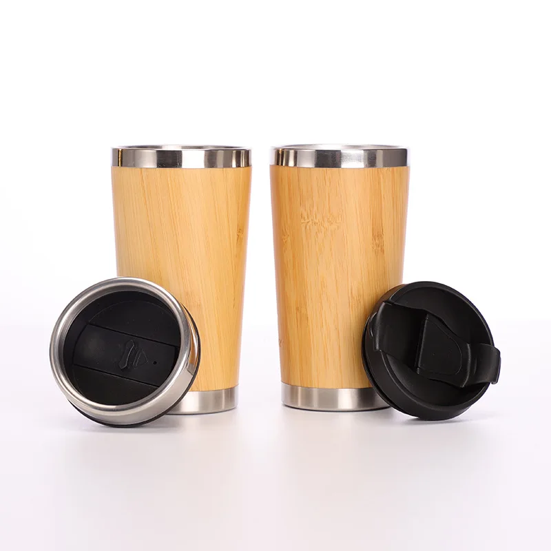 16oz Stainless Steel Bamboo Tumbler Keeps Hot & Cold for 12 Hour Double Wall Insulated Reusable Coffee Cup