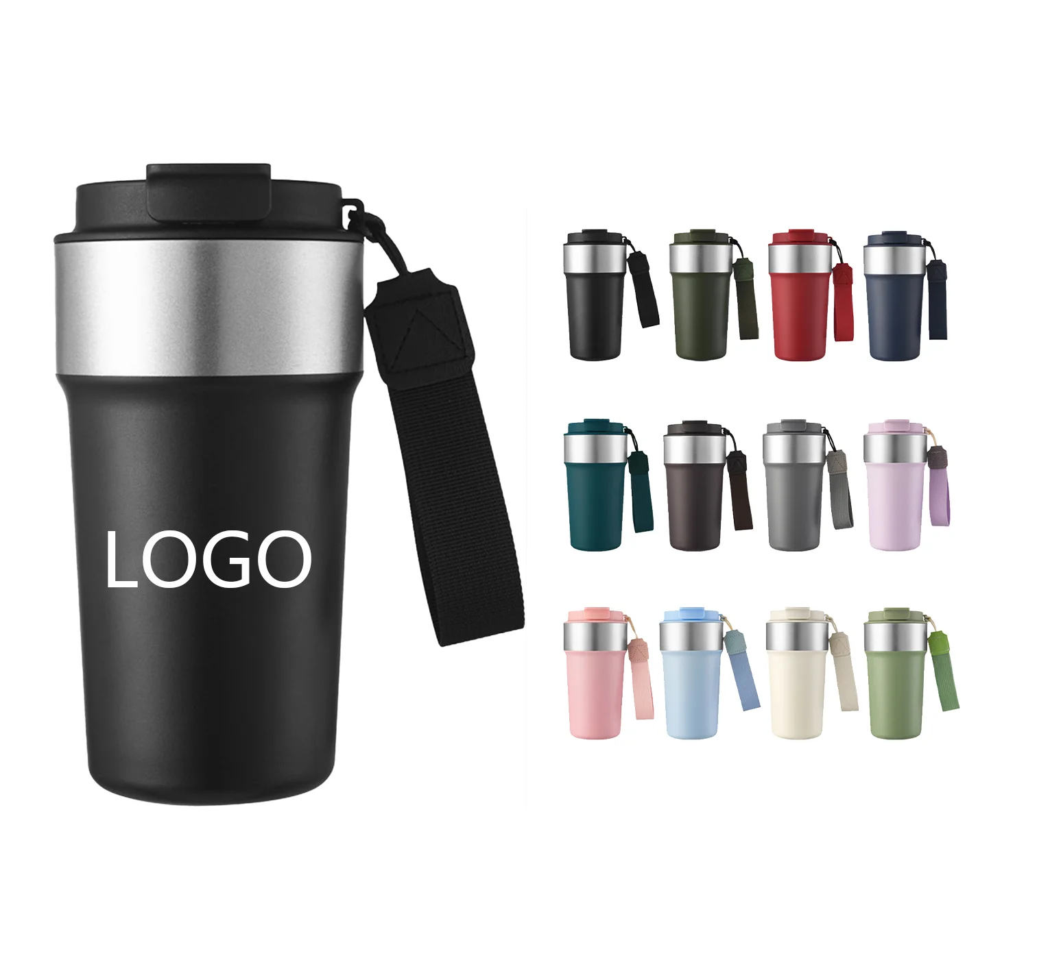 2025 New Product Custom Logo 510ML Double Wall Stainless Steel Vacuum Insulated Milk Coffee Tea Cup with Handle Strap