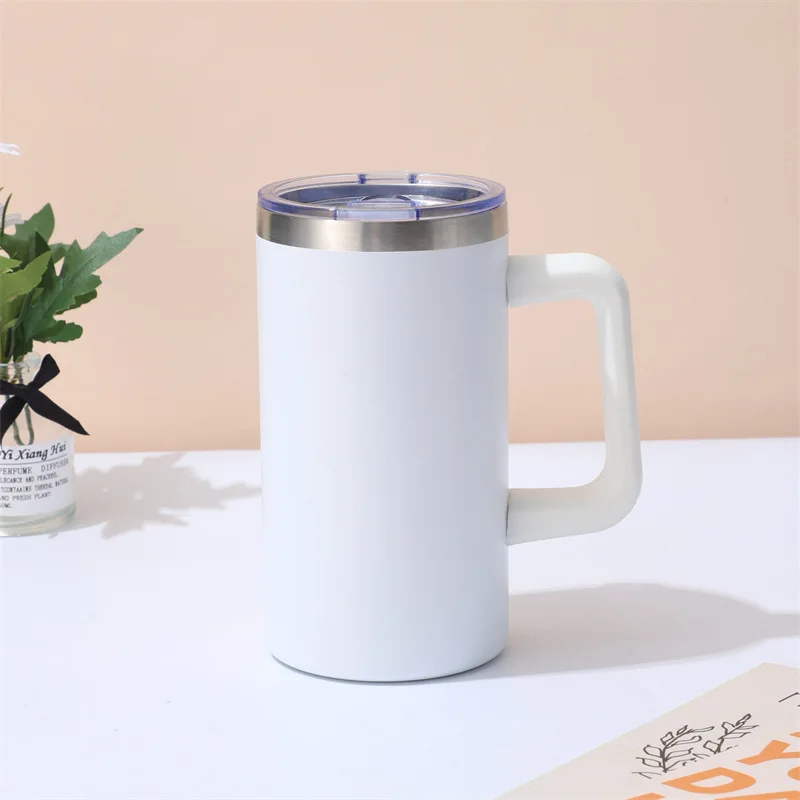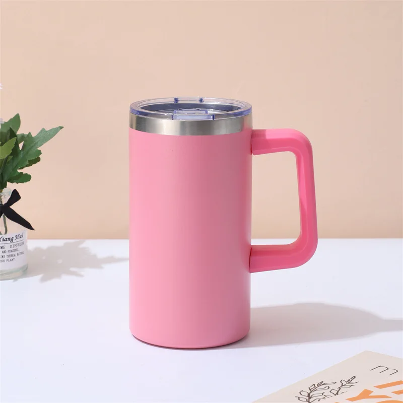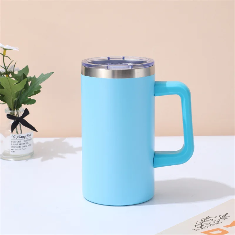20oz Stainless Steel Coffee Mug Rainbow Plated Camping Coffee Mug with Handle and Sliding Lid with Plastic Removable Handle