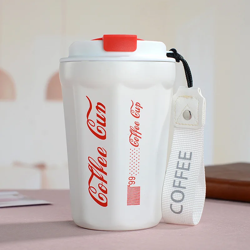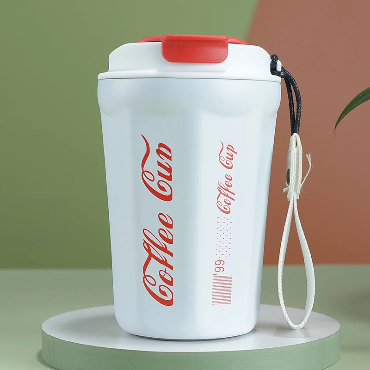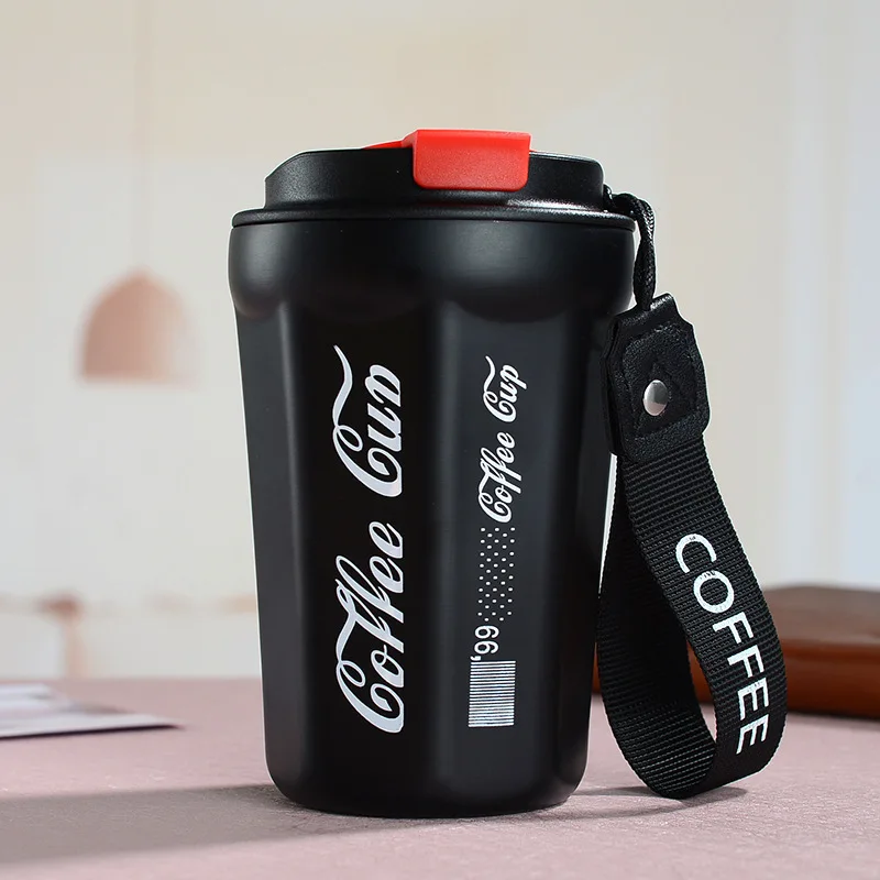 Leakproof Vacuum Double Wall Travel Coffee Cup Direct Drinking Cola Cup Portable Belt Cup Stainless Steel Coffee Mug
